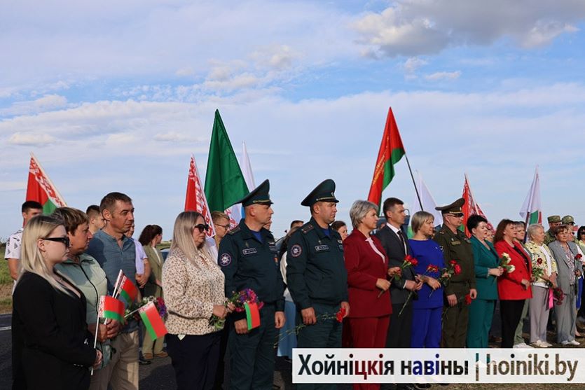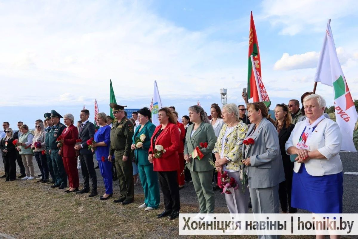 По традиции заезд стартовал с памятника Доваторцам, где хойничане во главе с председателем раийсполкома Дмитрием Шпигановичем и председателем районного Совета депутатов, лидером районного отделения партии «Белая Русь» Людмилой Рудченко возложили цветы к мемориалу.
