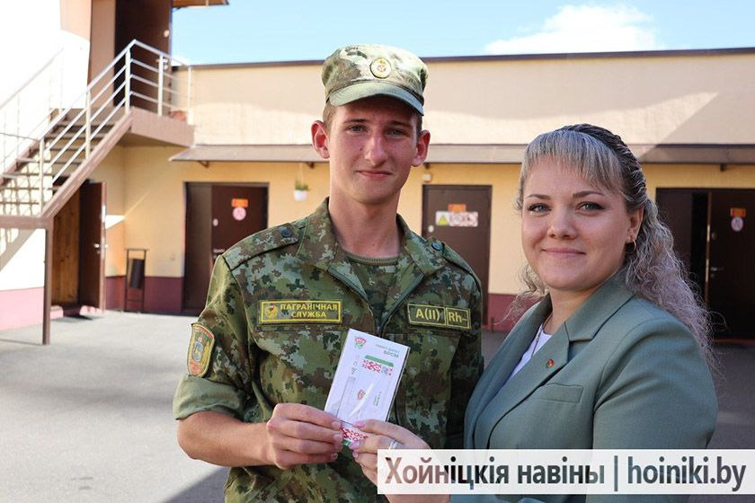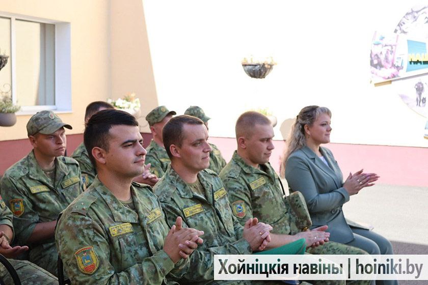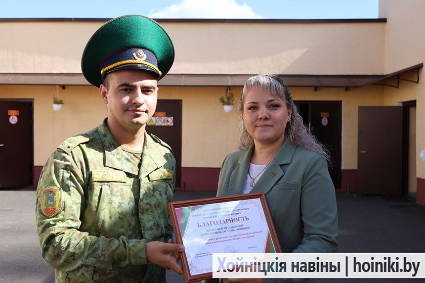 Первый секретарь райкома БРСМ высказала слова благодарности людям в зелёных фуражках и вручила Благодарность первичной организации заставы, а также смарт-билеты БРСМ:
